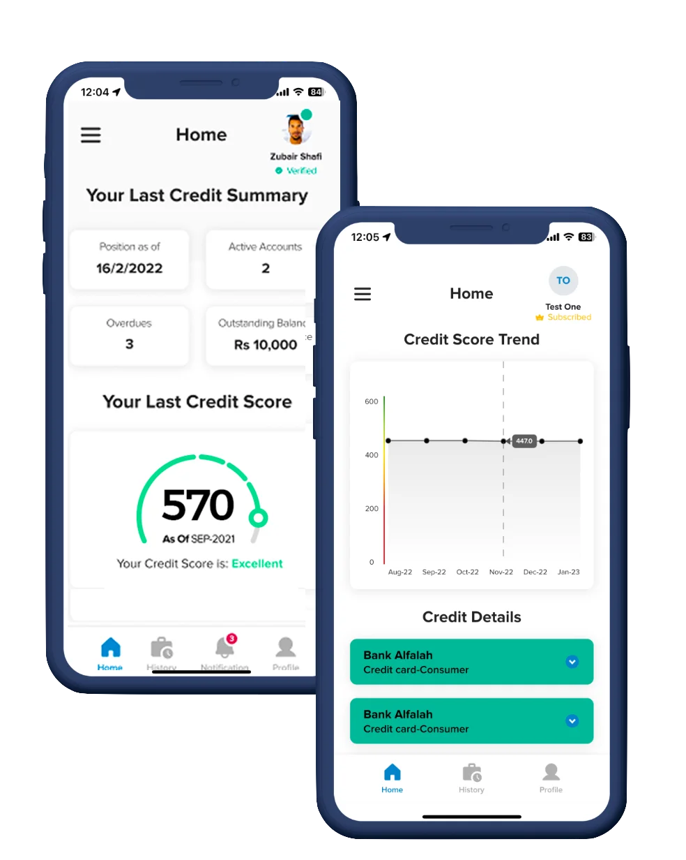 Download the app now and monitor your credit score, credit history and report on the go from Pakistan’s 1st State Bank licensed Credit Bureau.