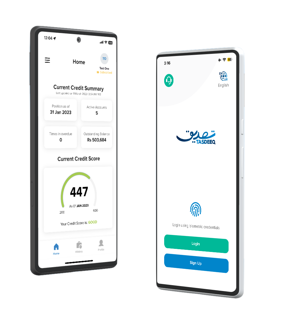 TASDEEQ is a licensed credit bureau by the State Bank of Pakistan. Our mobile application provides the highest levels of security, using state-of-the-art encryption to keep your data safe and secure.